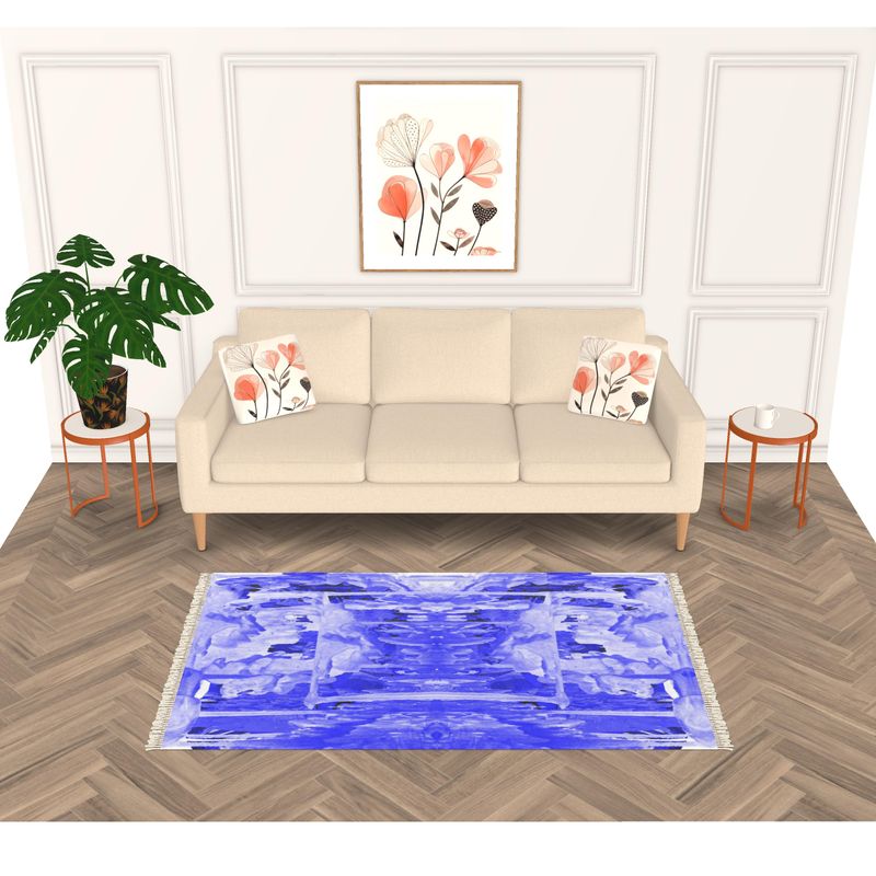 This rug is designed using the Manic Blue World print featured in our Jungled Collection.